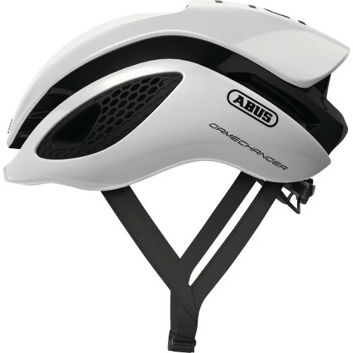 AERODYNAMIK OMDEFINERETGameChanger sætter helt nye standarder. Hvad er en cykelrytters største fjende? Luftmodstand.Enhver cyklist ved, at det at kæmpe mod vinden er en af de største udfordringer, man støder på. Med sit Multi Position Design omdefinerer GameChanger begrebet aerodynamik. Den specielle form reducerer vindfladen ved – uanset vejrforholdene – at minimere de eksponerede overfalder, hovedets hældningsposition og luftens indstrømningsvinkel. Vores innovative Forced Air Cooling Technology suger den indkommende luft ind og kanaliserer luftstrømmen rundt om hovedet, hvilket skaber et perfekt klima og holder dit hoved køligt selv under meget varme løb.High-end racehjelm til den dedikerede konkurrencerytter. ABUS GameChanger er den perfekt optimerede kombination af bedste aerodynamik, bedste ventilation, lav vægt, høj sikkerhed og smukt banebrydende design.Forced Air Cooling Technology: Avanceret ventilationssystem til et optimalt klima for hovedetFlowStraps: Aerodynamiske, uden blafren og hudvenlige takket være en specielt udviklet stropprofilZoom Ace: System til finjustering med handy justeringshjul til skræddersyet pasformAirPort: Aerodynamisk holder bag på hjelmen til cykelbrillerMulti Shell In-mold: Til sikker stødabsorbering og den bedste beskyttelsePlads til hestehalen: Hjelmen er velegnet til fletninger/hestehaler Model Varemærke Abus Design Farve Hvid